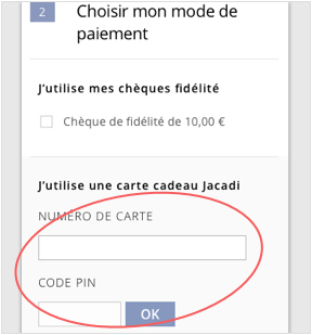 - Ik gebruik mijn cadeaukaart in de winkel of op de website jacadi.be bij de betaling van mijn bestelling.